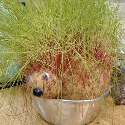 Reutilizando meia-calças usadas, um pouco de alpiste e serragem, fizemos um boneco "cabeludinho" para explicar as crianças a fase germinativa das plantas.